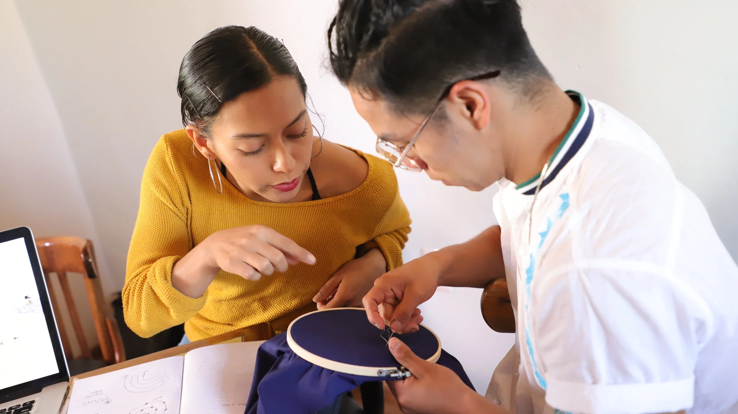 When We Touch is a workshop that facilitates creative approaches to multisensory storytelling. It is designed to explore the several social and cultural meanings and effects of touch by creating interactive, tactile interfaces to tell personal stories. In this workshop diverse community participants in Pachuca, Mexico explored first-voice storytelling, physical computing, programming, interpersonal touch and tactile listening. Workshop designer and facilitator, Kristine Diekman collaborated with Secta de Bordado, a local embroidery collective, to teach the participants how to create embroidered sensors using conductive thread, and combine these with microprocessors and basic computer programming. The workshop was organized by FRONDA and Simbiosis, Encuentro de Arte Interdisciplinar, and took place in the state of Hidalgo known for their Tenango embroidery techniques. When We Touch is a continuation of Diekman’s work in physical computing that creates an embodied, sensorial listening experience.